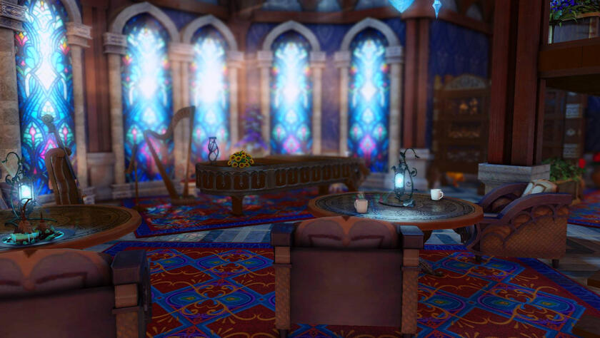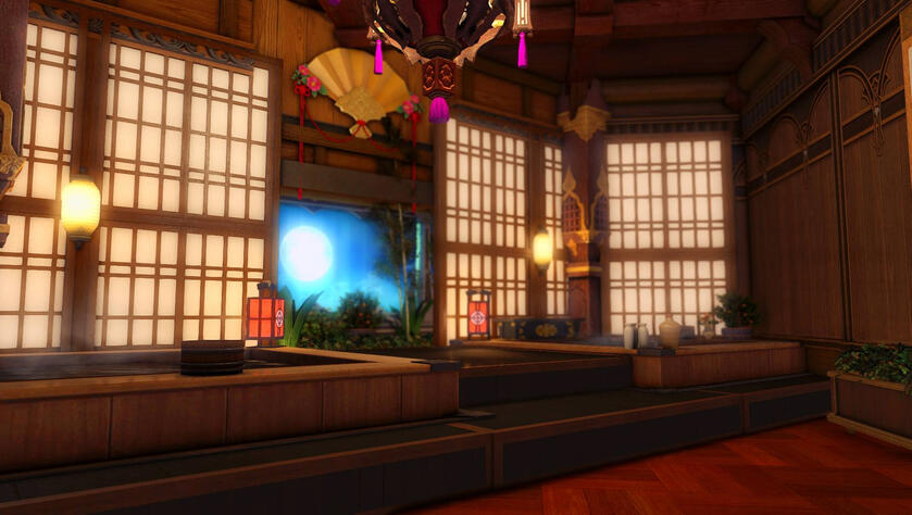 A cozy Hingan/Moogle themed cafe in Ishgard.